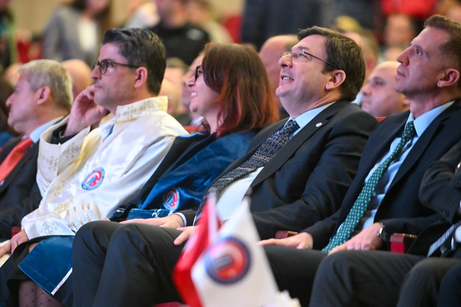 Müzik ve Sahne Sanatları Fakültesi'nin müzik dinletisi ile başlayan program, ÇOMÜ Rektörü Prof. Dr. R. Cüneyt Erenoğlu'nun açılış konuşması ile devam etti. Programda yer alan, ÇOMÜ'nün dış paydaşlarına plaket takdimi kapsamında ise Rektör Prof. Dr. Erenoğlu tarafından Belediye Başkanımız Muharrem Erkek'e de teşekkür plaketi takdim edildi.