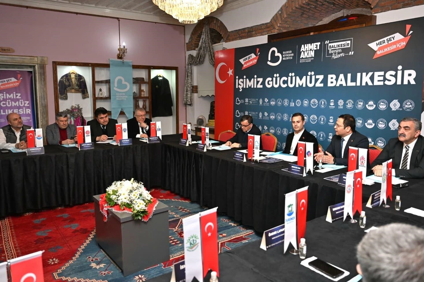 “AMACIMIZ 20 İLÇEDE VERİMLİ ÇALIŞMAK" Kuvayımilliye’nin başşehri Balıkesir’de en önemli amaçlarının birlik ve beraberlik içerisinde şehrin 20 ilçesinde verimli çalışmak olduğunu belirten Balıkesir Büyükşehir Belediye Başkanı Ahmet Akın, Sındırgılı hemşehrilerini bir an olsun yalnız bırakmadığını söyledi. Sık sık Sındırgı’ya ziyaret gerçekleştiren Akın, “Depremde büyük hasar gören Sındırgı’mızda devletimiz, belediyelerimiz, AFAD’ımız elinden geleni ardına koymadı. Büyükşehir Belediyesi olarak 8 ilçemizde 200 bine yakın binayı kapsayan envanterin çalışmasını başlatmıştık. Şu an da 135 bin binanın çalışması tamamlandı. Kentsel Dönüşüm Bilgilendirme Ofislerimizi kuruyoruz. 12 ilçeyi kapsayacak şekilde 120 bin binada detaylı analiz yapılmasına yönelik ihalemizi yaptık. Bunu da Bakanlığımızla istişareli bir şekilde yapıyoruz. Depreme dayanıklı bir Balıkesir yaratmak için birlikte hareket etmemizin çok doğru olduğunu düşünüyorum. Bunu bir Balıkesir planı olarak ortaya koyuyoruz" diye konuştu.
