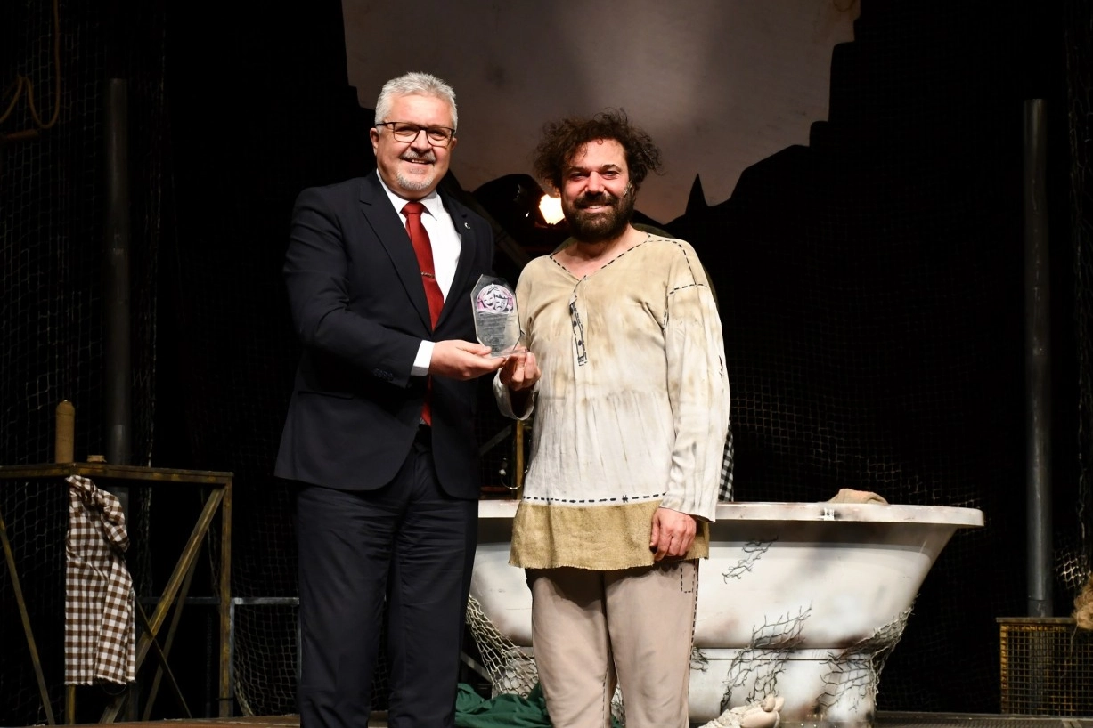 Oyunun ardından Lüleburgaz Belediye Başkanı Dr. Murat Gerenli, Halil Sezai’ye günün anısına plaket takdim etti.